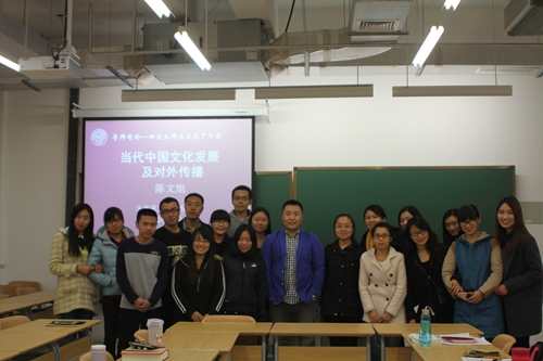 讲座结束后,陈文旭与在场同学进行了互动,耐心的对同学们所提出的问题作出详尽的解答。参加本次讲座的研究生纷纷表示,通过陈老师讲述自身的学习和研究经历以及对文化传播的全面介绍,让大家对当代中国文化的发展及传播、人文素养的提升等方面有了更加具体的了解并加深了对中国精神的认识,同时期待今后能够听到更多类似的生动有趣的讲座。