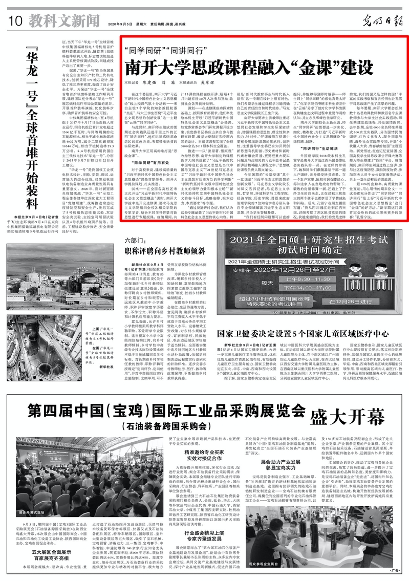 每年暑期,太阳成集团tyc7111cc都会组织数十名思政课教师和数百名专业课教师参与大学生社会实践活动,师生共建思政课程、共受国情教育。去年暑期,全校6000余名师生共组成600余支实践队,分为国情民情调研、红色文化育人、服务国家战略、海外社会实践等专项,开展“小我融入大我、青春献给祖国”主题活动。新觉悟社、红色记忆宣讲团、全国高校学生讲思政课公开课大赛等都为师生搭建了“四同”平台。疫情期间,南开师生则通过线上宣讲、参与社区疫情防控、募捐防疫物资、参加医务人员子女公益家教等活动,共上一堂生动鲜活的思政课。