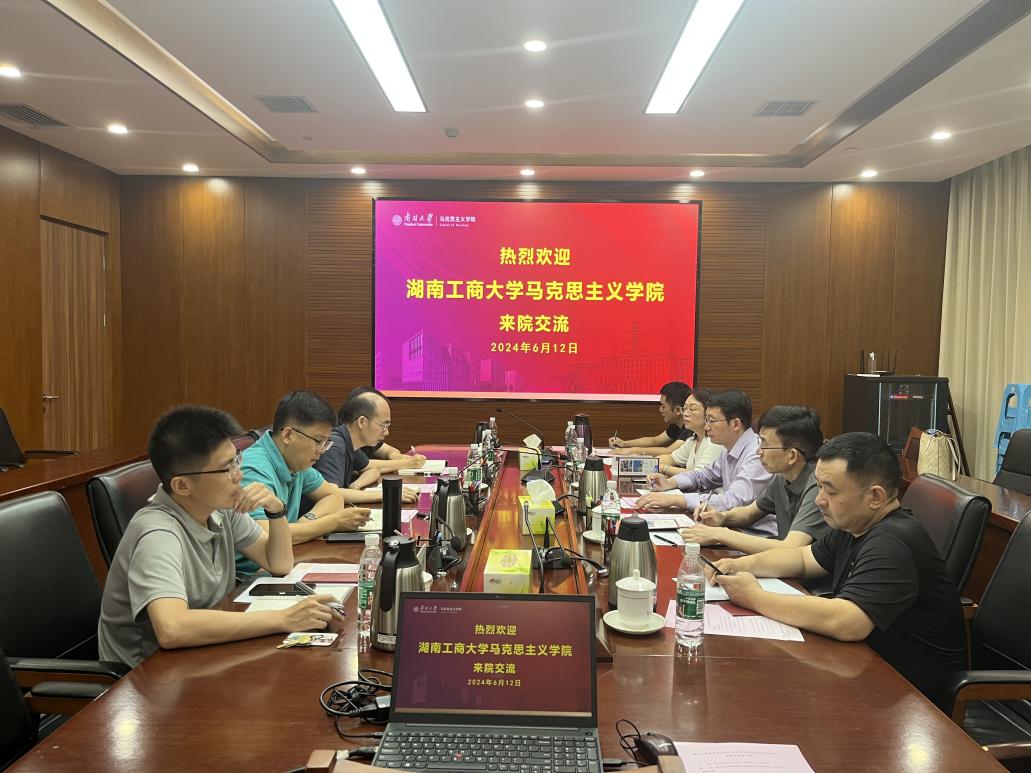 6月12日上午,湖南工商大学太阳成院长聂智、副院长陈飞虎一行到我院开展调研交流。学院常务副院长余一凡、教师代表任铃、刘一博、常宴会一起参加交流。交流会上,双方围绕思政课建设、学科建设、师资队伍建设和人才培养等方面进行了深入的探讨交流。